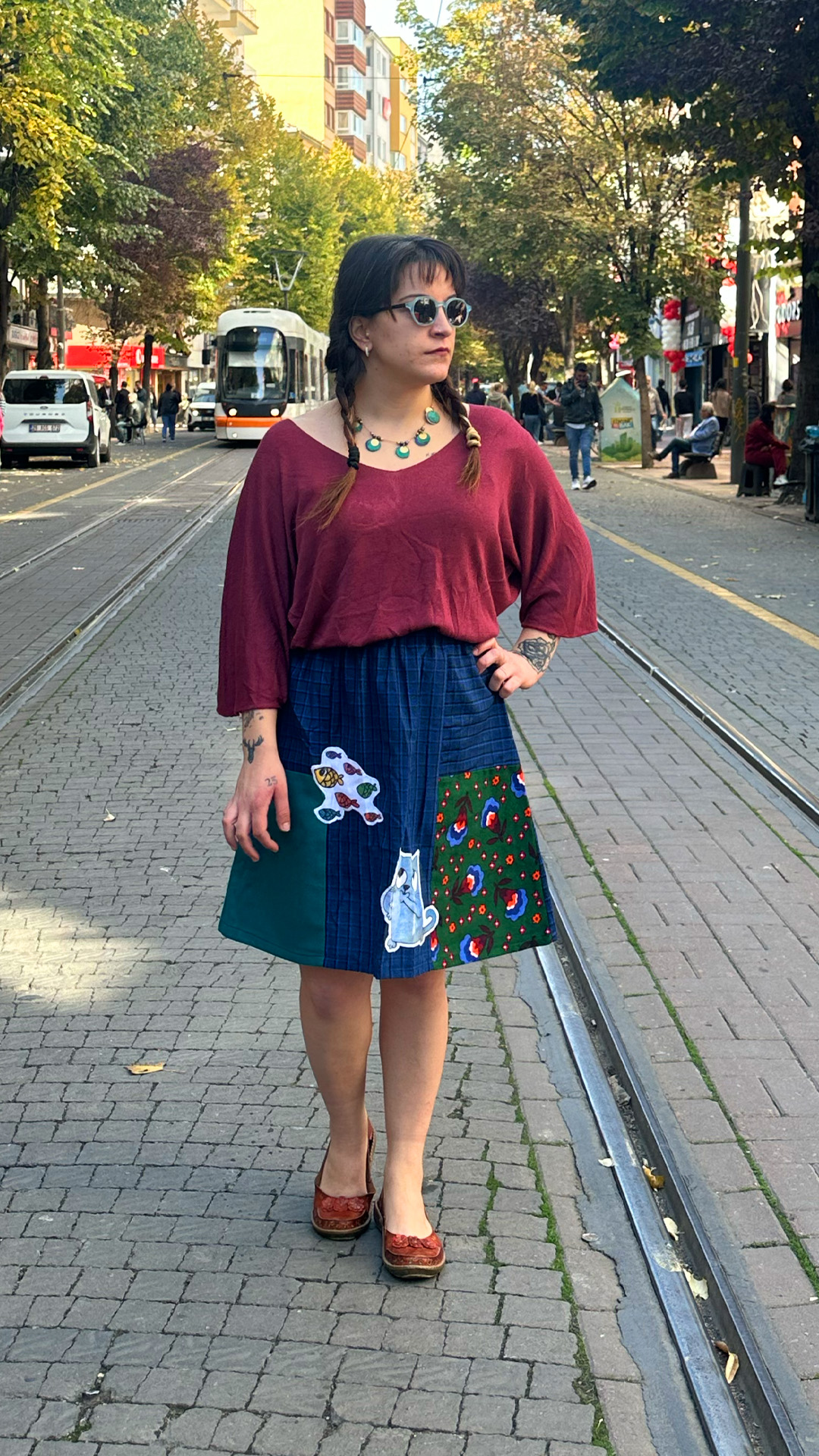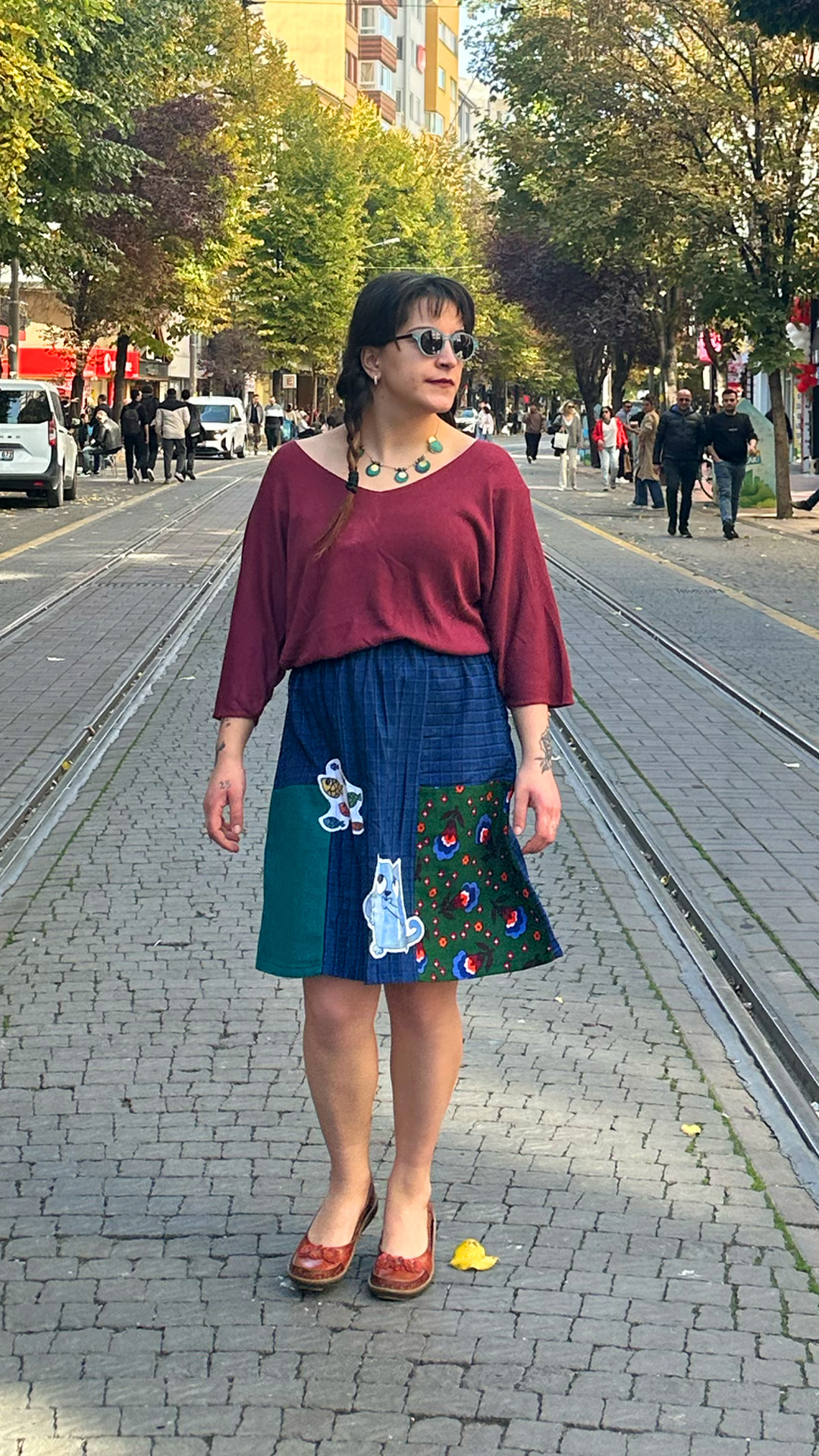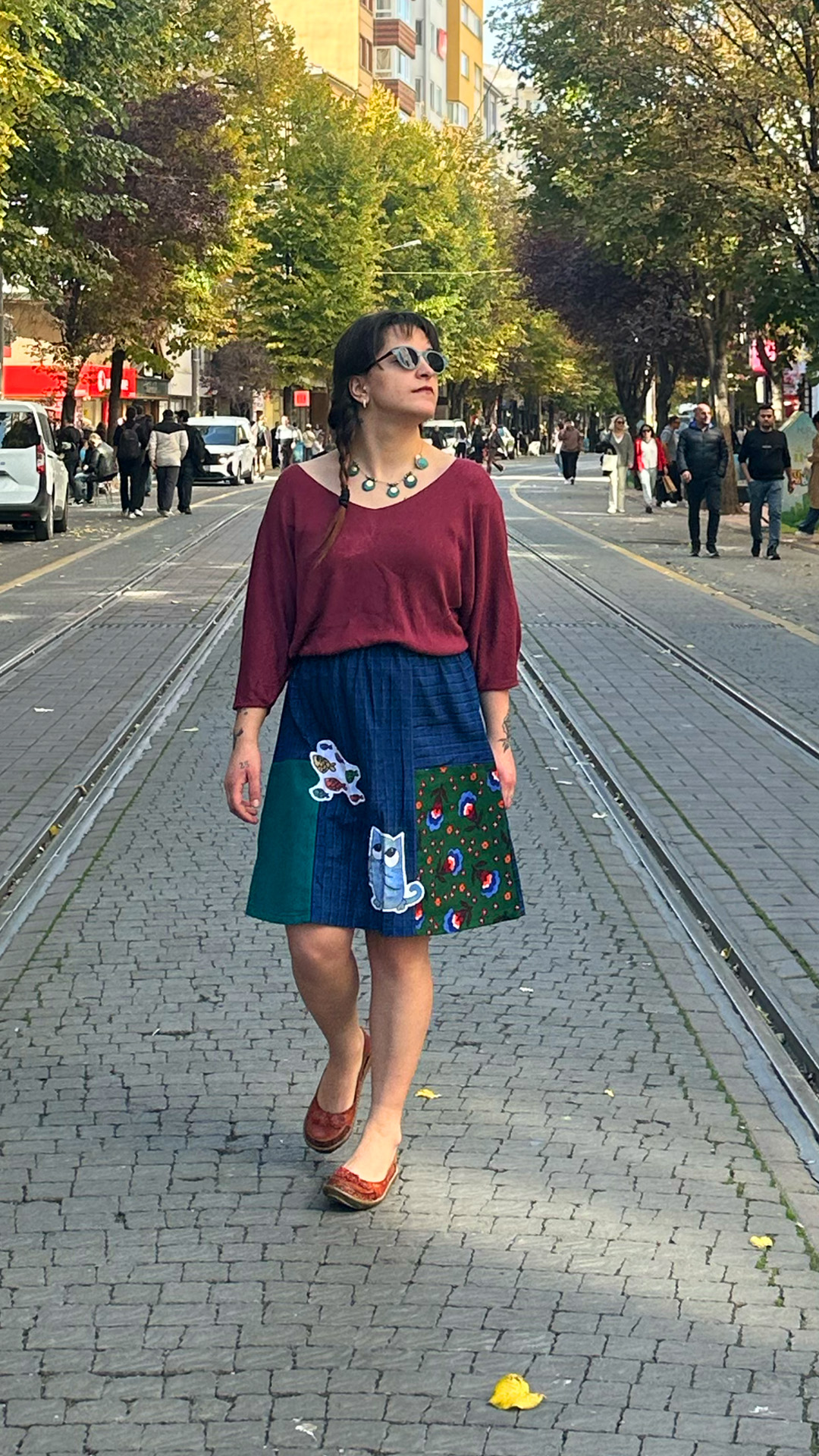 Kedi İşlemeli Tasarım Pazen Etek