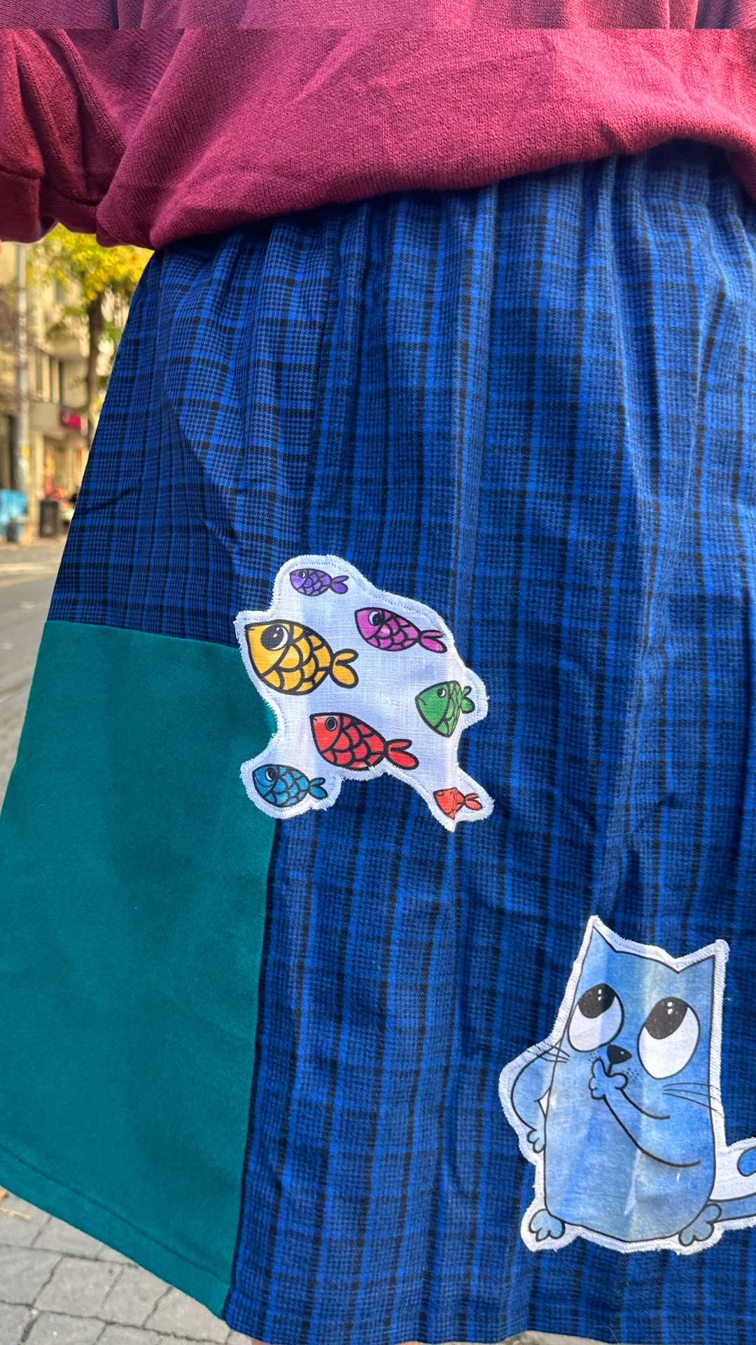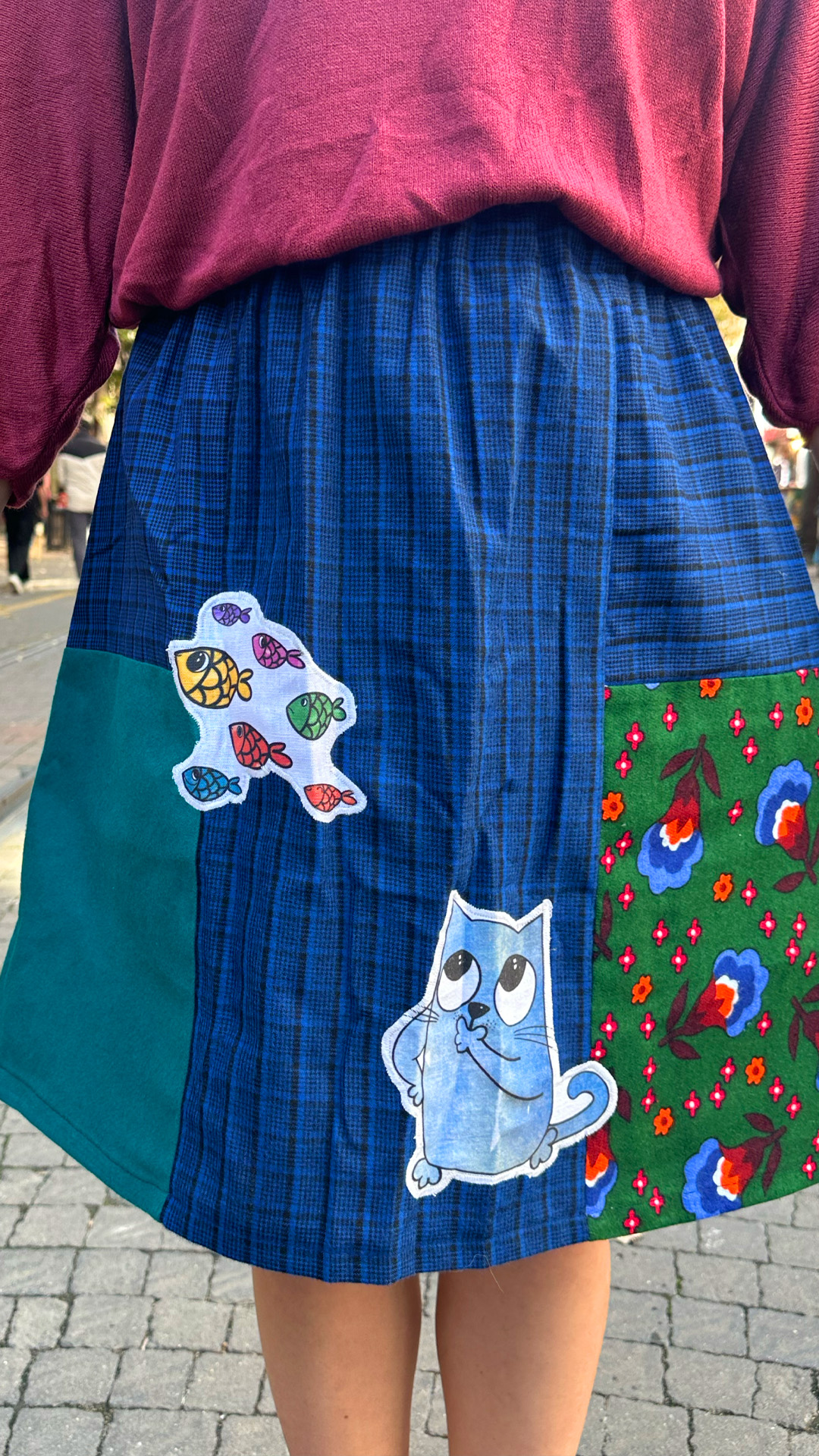 Özel Tasarım, Pazen Kumaş,Kedi Desenli, Lastikli Tasarım Etek.