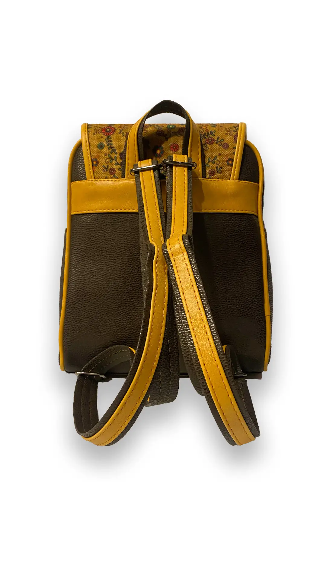 Çiçekli Frida Desenli Kapaklı Sırt Çantası (Kahve)