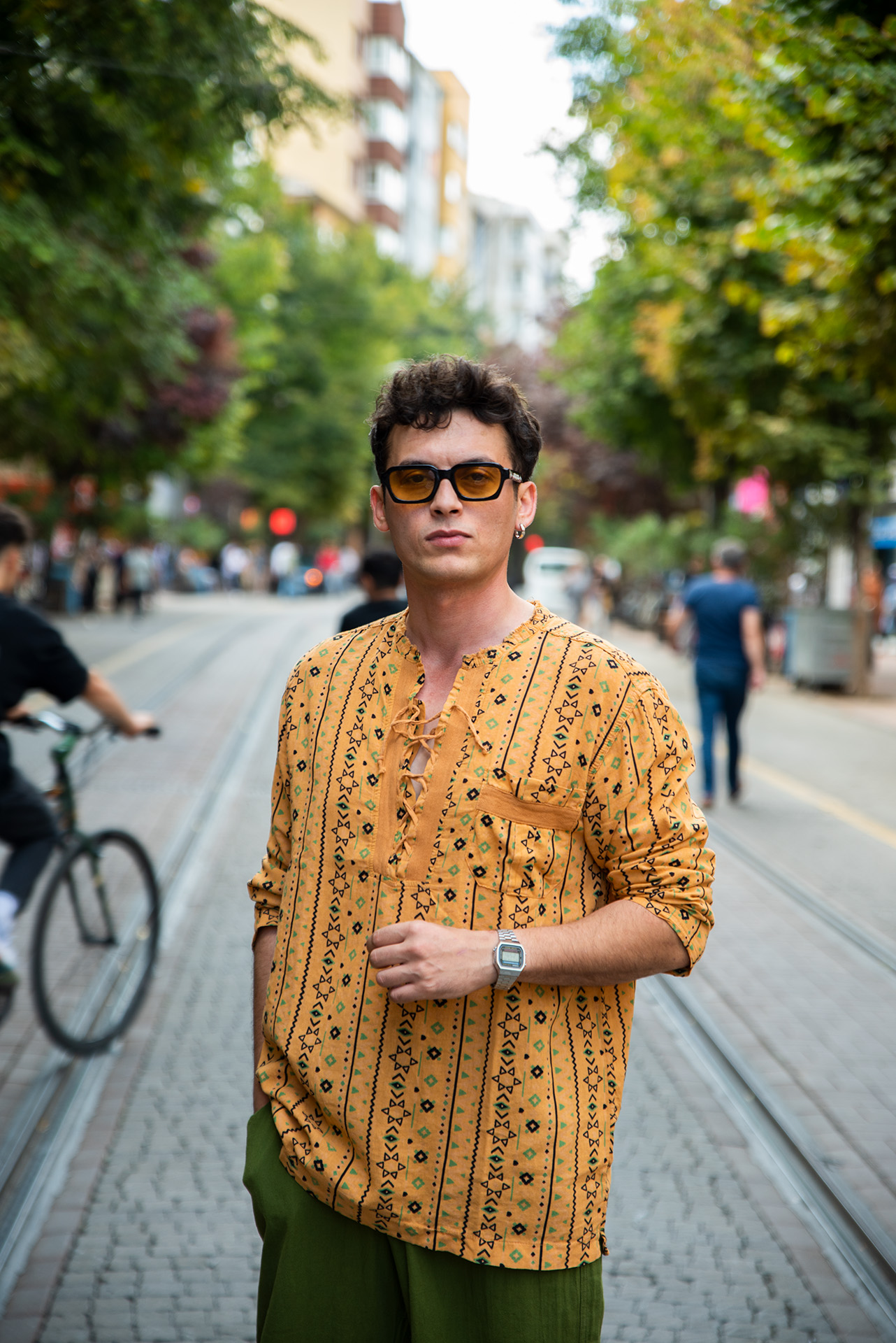 Baskılı, Etnik Görünümlü, Vual Gömlek. Mankenin üzerindeki L bedendir.