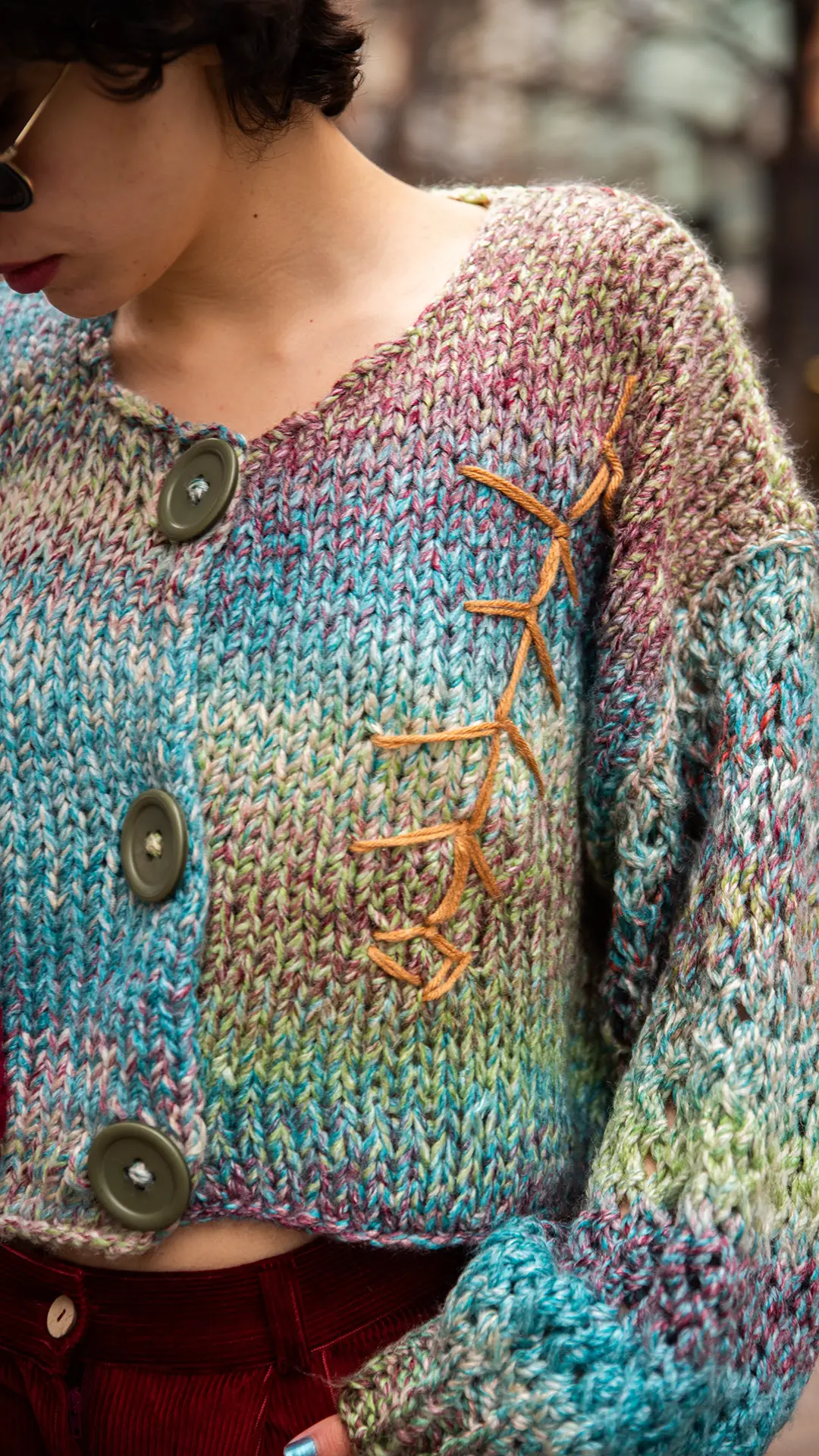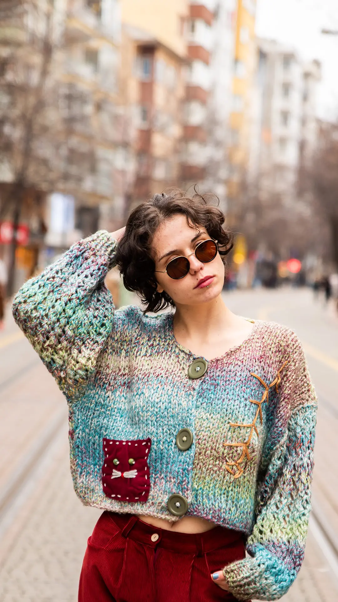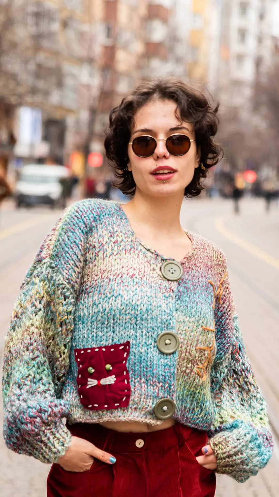 Özel Tasarım, Kılçık ve Kedi Detaylı, Kalın, Önü Düğmeli Hırka