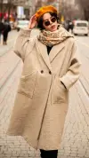 Kruvaze Yaka, Düğmeli, Cepli Kaban