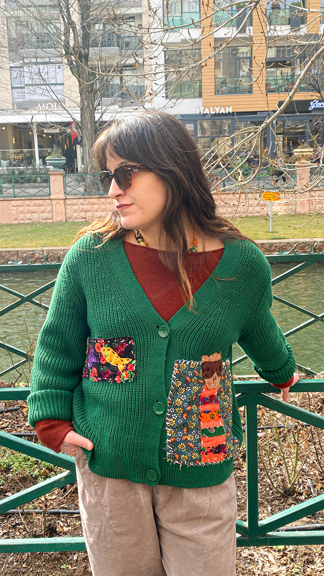 Şaşıkedi Bilgiç Kedi Hırka Yeşil
