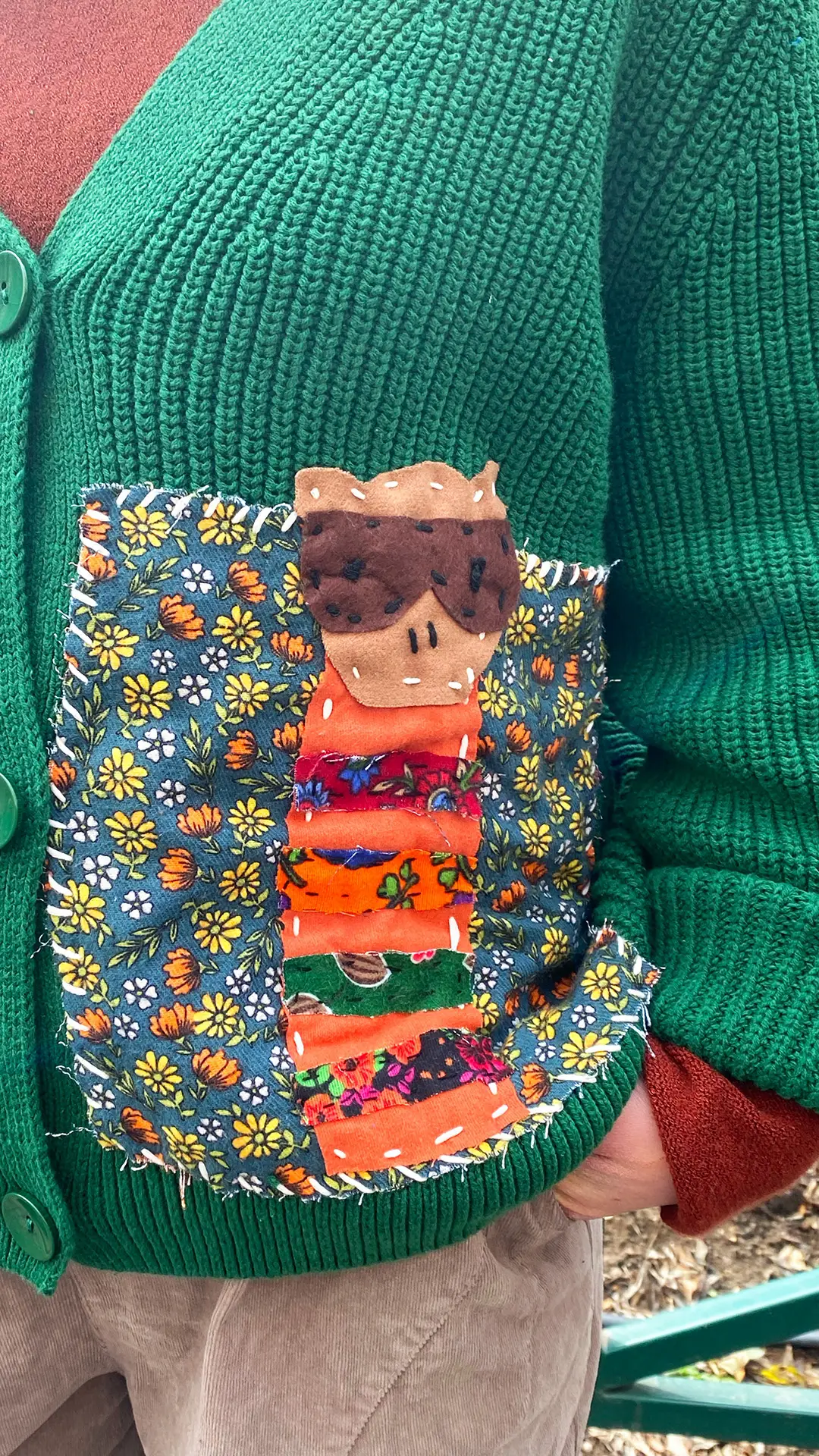 Özel Tasarım, V Yaka, Kedi ve Motif İşlemeli Hırka.